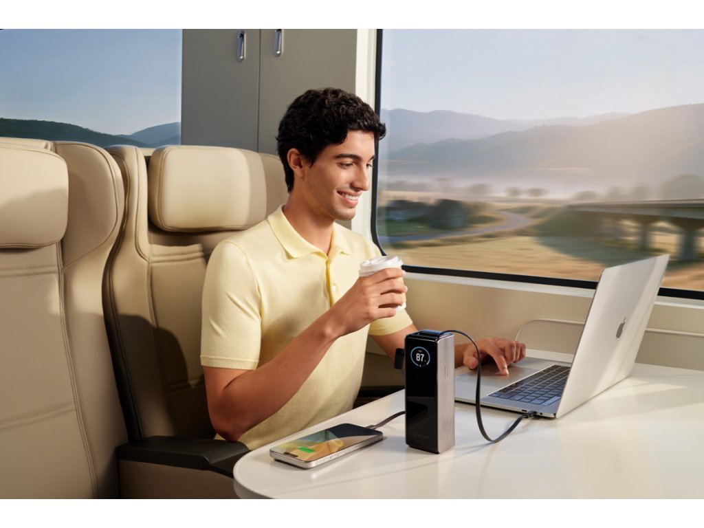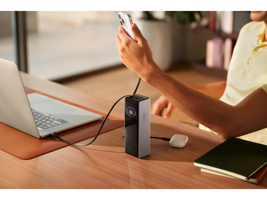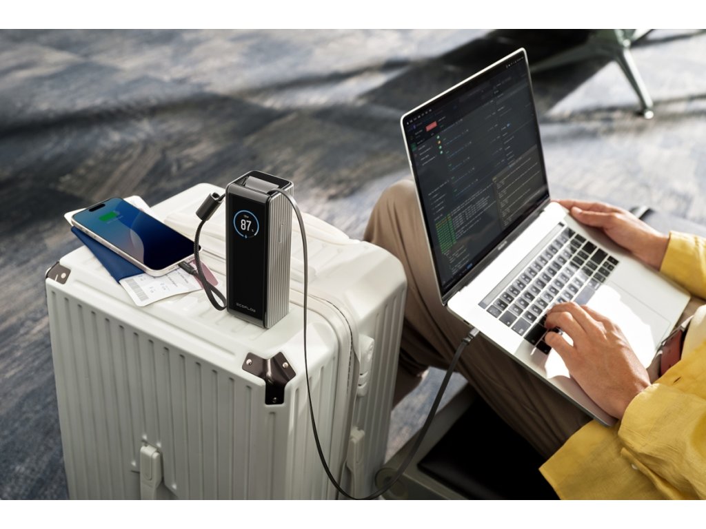Už žádné ztracené kabely, dva integrované 100W USB-C kabely s navíjecím mechanismem a poutkem jsou vždy po ruce, úhledně uložené v elegantním designu powerbanky, s navíjecím mechanismem, který vám umožní přístup k napájení během několika sekund.