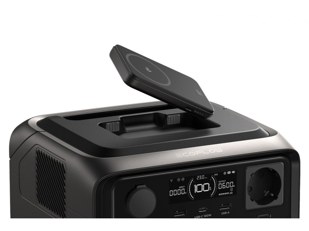 Součástí balení RIVER 3 Plus Wireless je zabudovaná magnetická powerbanka EcoFlow RAPID 5000 mAh. Patentovaná technologie EcoFlow X-Stream nabije powerbanku z 0 % na 70 % už za 33 minut.