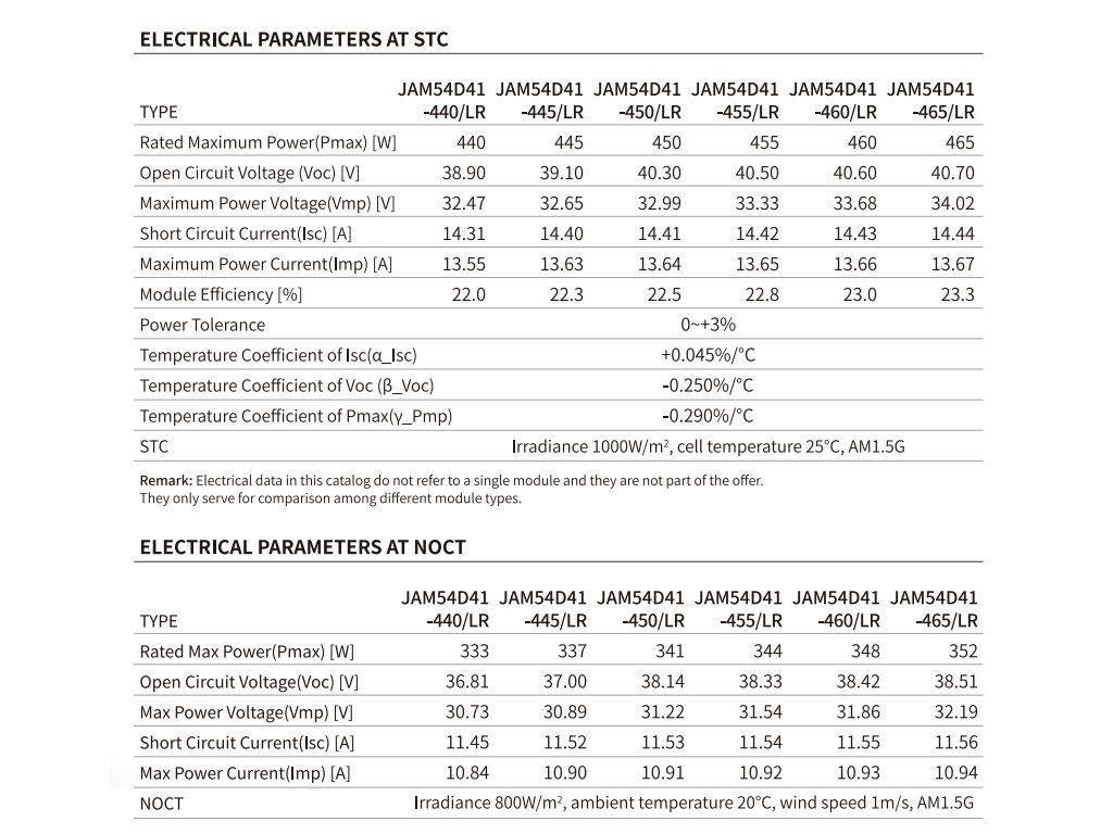 - Vs. JA Solar JAM54D40-470/LR → podobná série, ale D41 má novější optimalizaci (vyšší efektivita v některých variantách, lepší low-light performance)