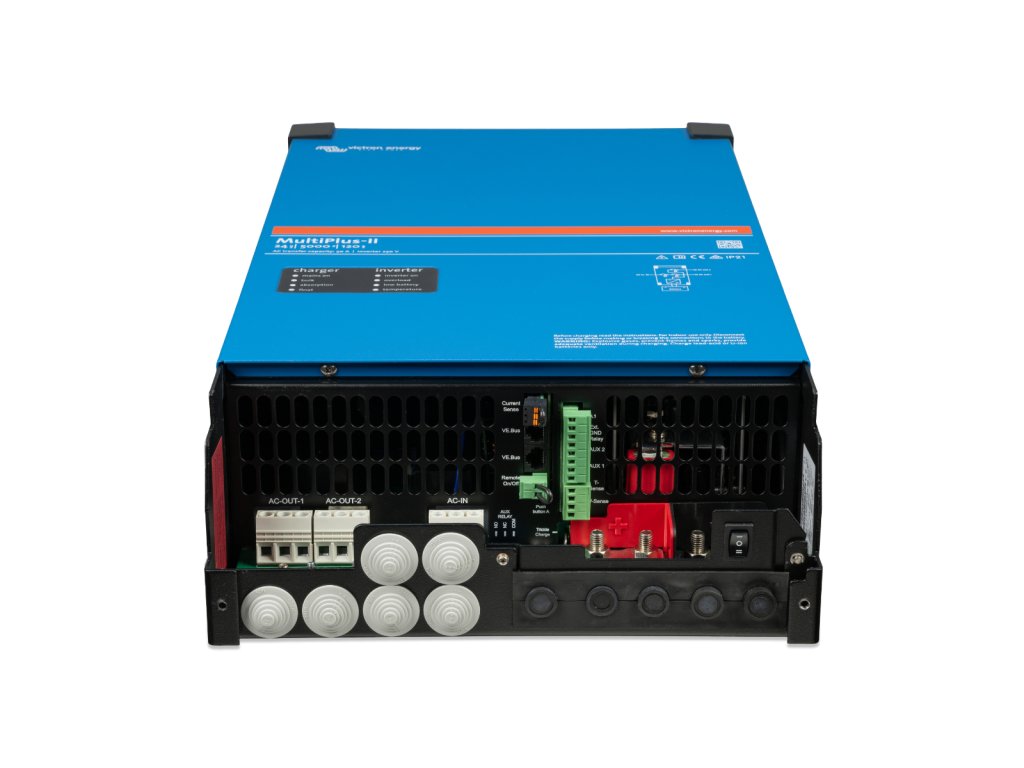 MultiPlus-II je multifunkční měnič/nabíječ s možností připojení externího snímače proudu, který rozšiřuje funkce PowerControl a PowerAssist, ideální pro použití v ostrovních a ESS systémech. Má také všechny funkce jednotky MultiGrid se zabudovanou anti-islanding ochranou na svém AC vstupu – zesílená ochrana zabránění nežádoucím dodávkách do distribuční sítě v případě jejího výpadku.