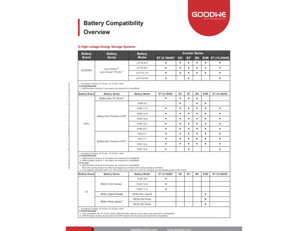 - Kompatibilní s měniči GoodWe řady BH, EH, BT a ET