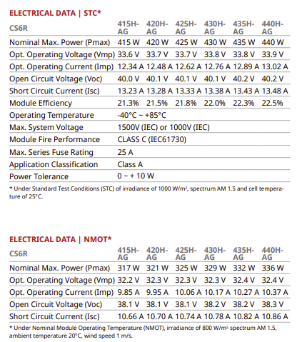 Solární panel Canadian Solar CS6R-425H-AG 425 Wp