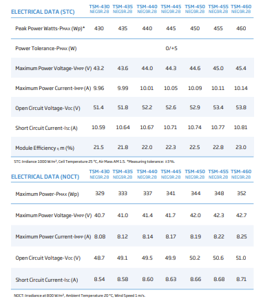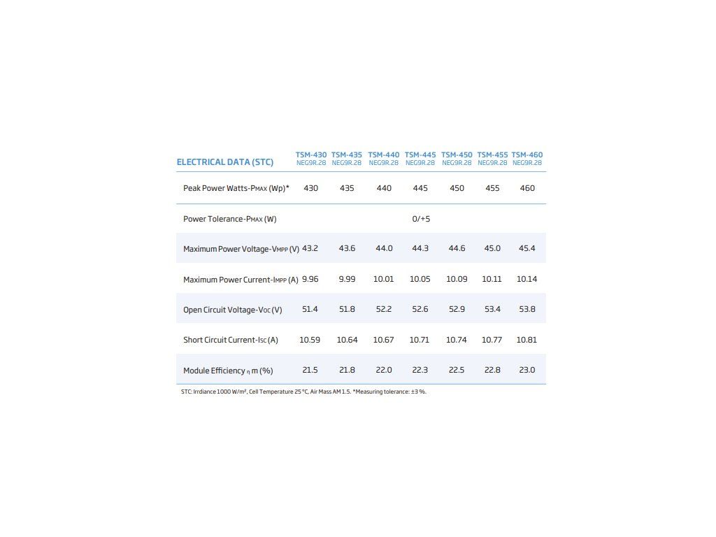 Tento model je o 5 W výkonnější než TSM-455NEG9R.28, se stejnou velikostí a technologií – jen vyšší bin (výkonová třída) pro lepší účinnost.